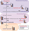 ![]() Figure 2 Expression pattern of metabolic profiles and genes involved in phenolic metabolism (Adopted from Cao et al., 2025) Image caption: Red coloring reflects significantly (p < 0.05) increased metabolites under sole NH4+ condition compared to mixed N and sole NO3- condition, while blue indicates the significantly decreased ones. Metabolites in black were present in the pathways but were not significantly changed, and those in grey were absent from our metabolic profile. The green letter denotes the relative key enzymes involved in the pathway. The column plot shows the relative value of each metabolite in treatments AN and N compared to treatment A. Asterisks indicate values determined to be significantly different (p < 0.05) between treatment AN, N and A. PAL, phenylalanine ammonia-lyase; C4H, cinnamate 4-hydroxylase; HQT, hydroxycinnamoyl–CoA quinate transferase; FNS, flavone synthase (Adopted from Cao et al., 2025) |