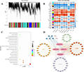 Figure 1 Network analysis dendrogram by WGCNA (Adopted from Zhang et al., 2024) Image caption: (A) Module hierarchical clustering tree diagram. (B) Heat map of key physiological indicators and inter-module correlations. (C) KEGG enrichment map of hub genes in the blue module. (D) Co-expression network of structural genes in phenylpropanoid biosynthesis pathway and transcription factors (Adopted from Zhang et al., 2024) |