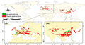 Figure 1 Identification of the priority protected areas and the key protected areas of M. glyptostroboides, which are mainly in Europe (a) and in East Asia (b) (Adopted from Zhang et al., 2020) |